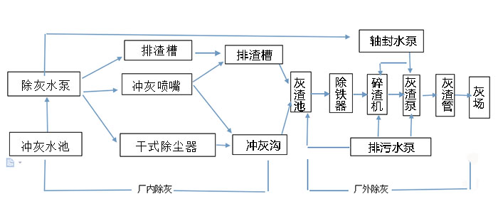 水力除灰系統可分為灰渣混排和灰渣分排兩種,灰渣混排是將除塵器分離下的爐膛排出爐渣,在灰渣輸送設備之前混合在一起。灰渣分排則是將飛灰和爐渣分別用單獨的系統輸送。