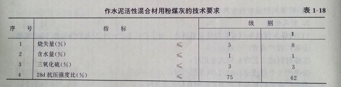 (2)水泥生產中作活性混合材的粉煤灰應滿足表1—18的要求?!?br />